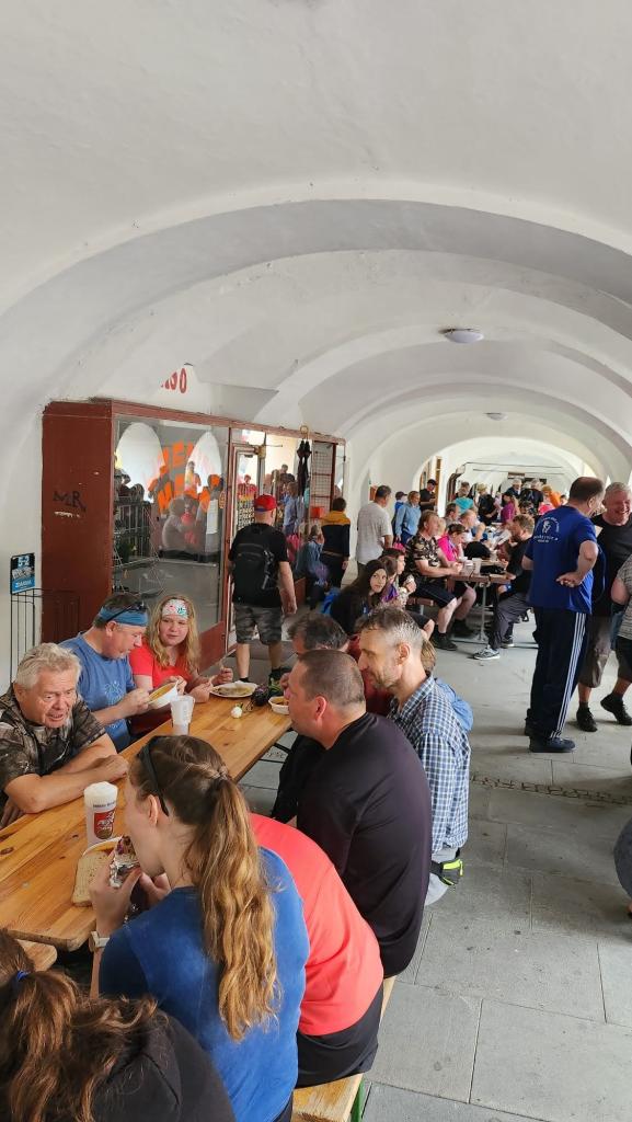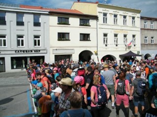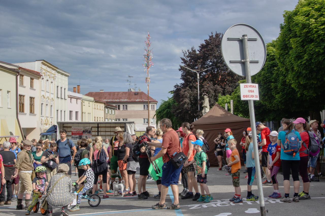 Ráno bylo teplé a slunečné. V průběhu dopoledne přišly poměrně silné přeháňky, které trvaly i odpoledne. Všichni účastníci na trati několikrát zmokli. Na náměstí jsme se před deštěm schovali pod podloubí.