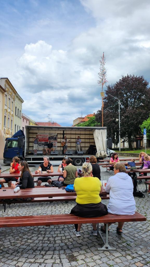 I přes nepřízeň počasí na náměstí zůstalo dost lidí, kteří poslouchali hudbu, občerstvovali se a měli dobrý pocit z absolvované krásné vycházky. Opět jsme se přesvědčili, že Brušperská padesátka retro aneb Šlapání kolem zemské osy má již své příznivce.